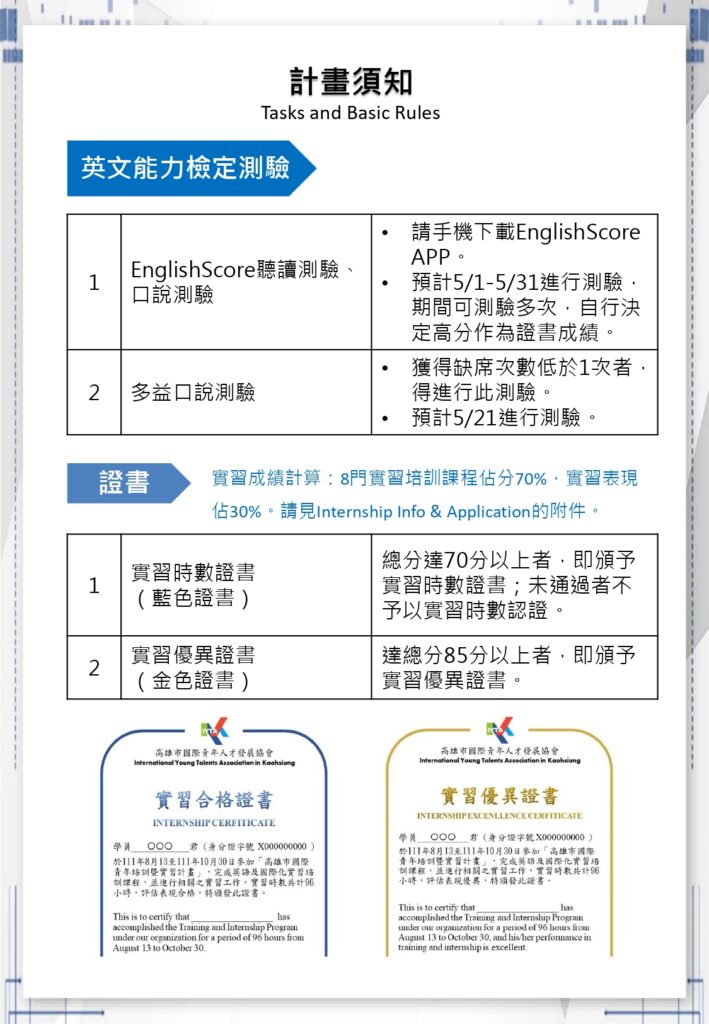 培訓實習成績/證書