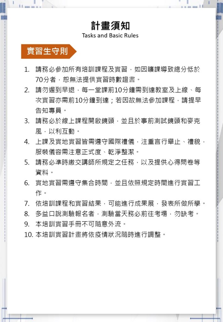 關於培訓實習