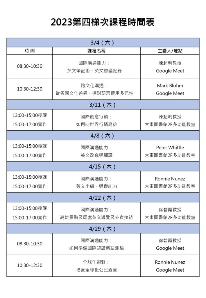 報名表與日期一覽