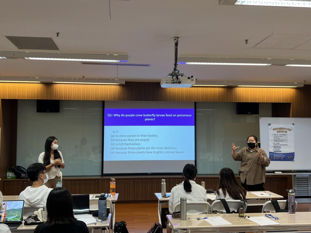 在茂林紫蝶生態園區內,隨處可見由學生製作的互動式雙語QR code,掃描後可以看見詳細解答。接著,可到實習生擺設的攤位進行闖關,並且聽實習生解說這些有趣的小知識,還可以拿到精美小獎品,為這趟茂林之旅留下深刻的回憶。